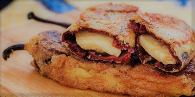 Ya en casa, limpiamos los chiles con un trapo seco y con un cuchillo afilado se abren lateralmente para extraer venas y semillas y se quedan toda la noche remojando en agua con sal. Al día siguiente, se escurren y Doña Paz empieza la laboriosa tarea de secarlos con papel toalla y rellenarlos con una buena porción de queso fresco, acompañado de una hoja de verde epazote. Posteriormente los revuelca cuidadosamente en harina procurando no quede porción del chile sin cubrir, antes de pasarlos por el huevo. ‘El secreto del capeado es batir muy bien las claras’ Con gran destreza Doña Paz toma del rabito cada uno de los chiles, los sumerge en la blanca espuma y mágicamente se cubren de un abrigo que, al contacto con el aceite caliente, logra un ‘correcto capeado’ como ella misma lo define: uniforme y sin exceso de grasa.