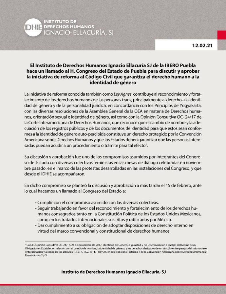 Exige Ibero Puebla al Congreso la aprobación e la de la Ley Agnes