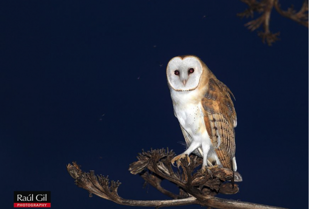 El fotógrafo poblano Raúl Gil logra en un instante esta fotografía luego de tres noches en vela. La lechuza (Tyto alba) es una hembra juvenil, y nos mira desde la penumbra del altiplano mexicano. Es la laguna de Loma Roja, en la región de San José Chiapa, ese llano formidable cercado por luciérnagas y magueyes con el fondo eterno de la Maliche.