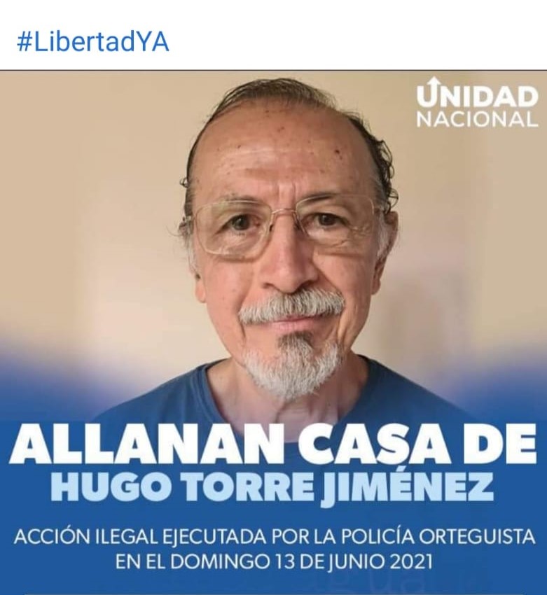Antes de ser arrestado, de manera ilegal, Torres puso un mensaje en las redes sociales: “Hace 46 años arriesgué mi vida para sacar de la cárcel a Daniel Ortega (…), pero así son las vueltas de la vida, los que una vez acogieron principios hoy los han traicionado”. Y añadió “estos son zarpazos desesperados de un régimen que se siente moribundo, que no tiene asidero legal, que no tienes justificación como para permanecer en el poder”.