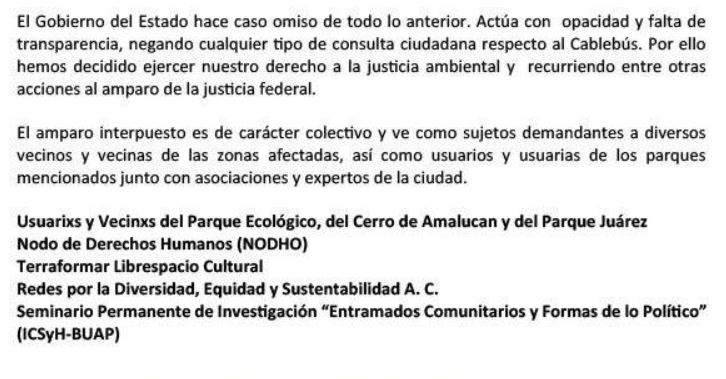 Algunos vecinos se ampararon y el juez dictaminó que se tiene que reparar el daño. (Sentencia de amparo identificado con el número 312/2018 a cargo del Juzgado Primero de Distrito en Materia de Amparo Civil, Administrativa y de Trabajo y de Juicios Federales en el Estado de Puebla, resuelto con fecha 24 de septiembre de 2020 mediante recurso de revisión 260/2019 a cargo del Segundo Tribunal Colegiado en materia Administrativa del Sexto Circuito)