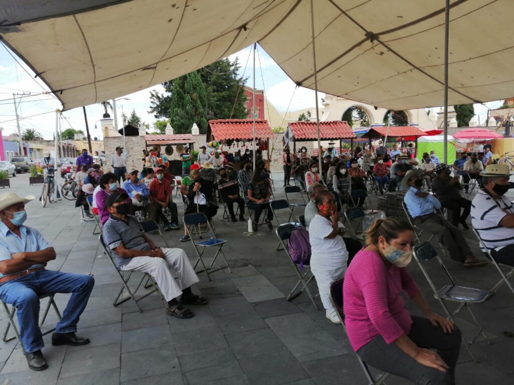 La cita se dio a las 12 horas, la plaza había sido desinfectada, la lona colocada y un ciento de sillas esperaron al centro a ser formadas. Alrededor de las 12:30 pm ya se habían acercado unos 150 vecinos por lo que se dio inicio a la bienvenida de autoridades, en la cuales estaban el secretario de desarrollo urbano Moisés Coyotl Cuaya, representante del (IPPI), representante de Derechos Humanos y Antropólogo Julio Glockner.