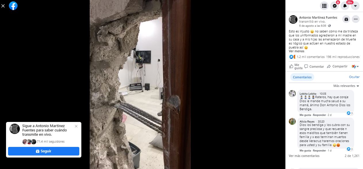 Para el domingo en que escribo este video en el facebook de Antonio Martínez Fuentes, conocido como “El Toñín”, tiene ya más de 196 mil reproducciones y 1261 comentarios. Y como puede verse, tiene 71,400 seguidores. El prófugo no está tan escondido. Fotografías a plena luz del día en su casa, en los campos de labor, montado en su caballo. Un verdadero influencer en Facebook.