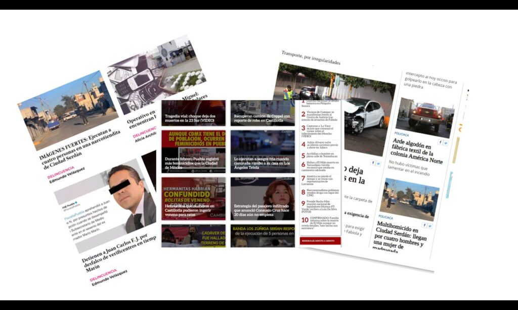 La agenda de la nota roja en Puebla está marcada por dos fuentes principales: la desafortunada realidad mexicana de violencia y muerte, y las decenas de boletines diarios emitidos por los tres órdenes de gobierno con reportes de detenciones, operativos y accidentes viales.