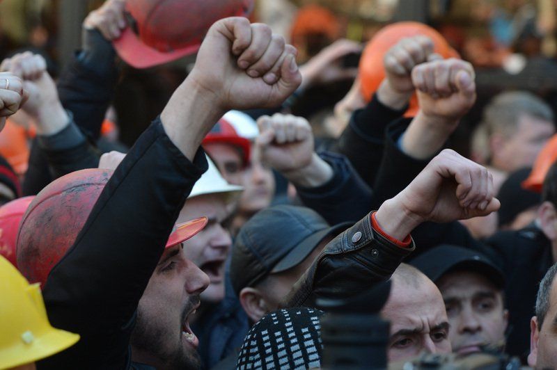 Los mineros organizaban regularmente acciones de protesta espontáneas, incluida la medida más desesperada: una protesta ilegal. Una gran acción de protesta de este tipo tuvo lugar en 2020 en Kryvy Rih, el centro de la minería de hierro, de importancia transnacional. Un grupo de trabajadores de KZRK, una antigua planta estatal que consta de cuatro minas de hierro y más fábricas asociadas, pasó más de un mes dentro de las minas, exigiendo un aumento salarial. Antes de la acción, sus salarios ni siquiera alcanzaban los 1.000 euros. Sus compañeros de trabajo y familiares, que realizaban una protesta simultánea en la ciudad, hicieron una pancarta que decía “La dignidad comienza a partir de 1.000 euros”. Una clara referencia a los eventos de Euromaydan, llamada la “Revolución de la Dignidad” en Ucrania, y una pregunta: ¿podemos realmente hablar de dignidad nacional si la gente está tan mal pagada por su arduo trabajo?