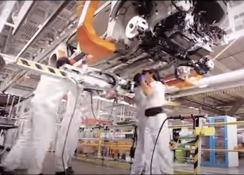 Montaje del New Beetle en el año 2012. Fotograma de Proceso de producción de autos en VW | Volkswagen.