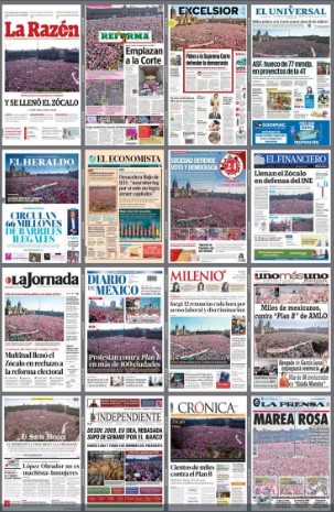El domingo 26 de febrero la derecha dio una demostración no sólo de la fuerza que tiene en el país, sino de los resortes que la impulsan. Hay que comenzar diciendo que la concentración de este domingo superó en número de participantes la que se realizó el 13 de noviembre de 2022. Esta vez la manifestación de las derechas movilizó entre ochenta y cien mil personas y logró llenar el zócalo de la ciudad de México, plaza principal del país y que suele ser un indicador de las capacidades nacionales que puede tener una fuerza política en lo que se refiere a capacidad de convocatoria.