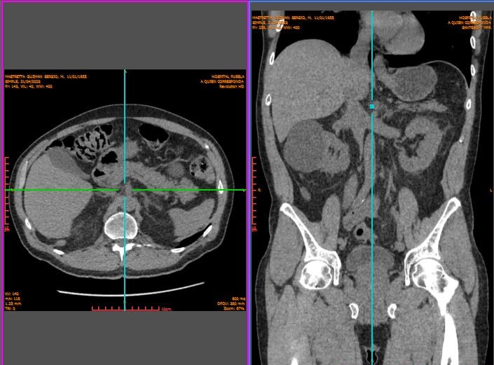 Ahí, en algún punto de ese sumidero de mi abdomen, la rebelión de las bacterias. (Detalle de TAC tomada el 21 de abril de 2023.)