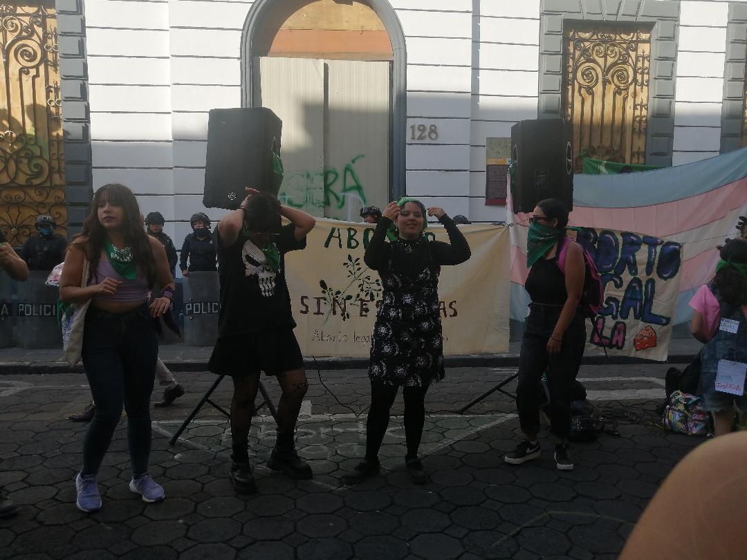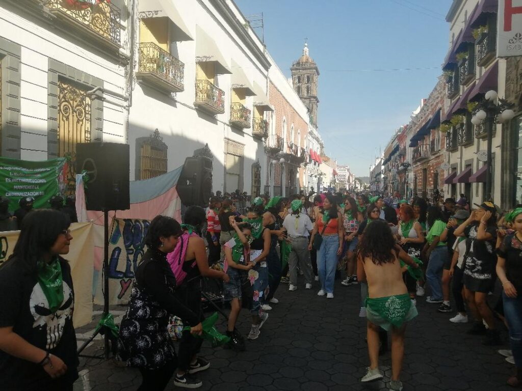 Mientras esperan la llegada de la marcha desde Plaza Dorada al Zócalo, ellas bailan. No son más de cincuenta las que se han reunido frente al portón del Congreso del Estado resguardado por policías. Pero están ahí como prueba de que el país, contra todo lo que podamos pensar, ha cambiado. Para constatarlo fue la tarde de este jueves 28 de septiembre pues en este día se ha dado por recordarlo como el Día de Acción Global por el Aborto Legal, Seguro y Accesible, también conocido como Día por la Despenalización y Legalización del Aborto. Por la mañana he lído escrto por Anaid Piñas (Aborto en Puebla: iniciativa lleva más de cuatro años en la ‘congeladora) un muy cuidado recuento sobre lo que han dejado de hacer los diputados en Puebla desde que el 10 de junio de 2019, en el periodo correspondiente a la LX Legislatura, la diputada priista Rocío García Olmedo plantó con  todo cuidado una iniciativa para modificar la Ley Estatal de Salud, con el fin de garantizar la interrupción del embarazo en las primeras 12 semanas de gestación de forma “gratuita y segura”.