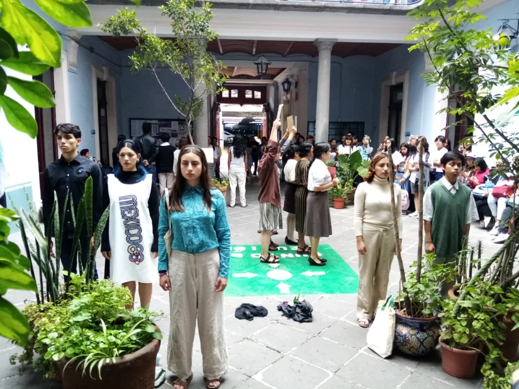 Y todavía más: en el patio del Edificio Alfonso Reyes, estudiantes de la Facultad de Artes de la BUAP bajo la dirección de la doctora Elvira Ruiz Vivanco, presentaron un performance teatral. La representación dramática era de estudiantes haciendo de sí mismos, tal vez con otro estilo de ropa, pero la esencia y espíritu de la juventud es igual sin importar la década; y esto era evidente.