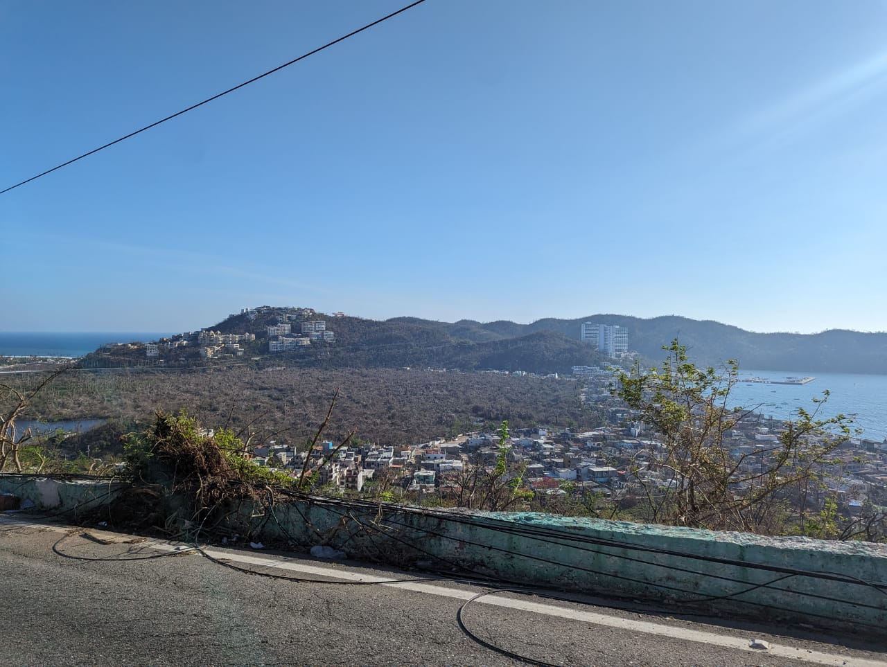 Mi mamá se puso a llorar con la Brenda la jardinera, se los juro que es muy impactante. En la zona de las casas de las Brisas no queda nada verde. Ahora ves las casas perfectamente en los cerros pelones. Se ve como un coco abierto y podrido, como color rojo y seco. Muy raro, muy desconcertante y no entiende la cabeza qué pasó, te deja atónito. Es como un paisaje que nunca has visto.