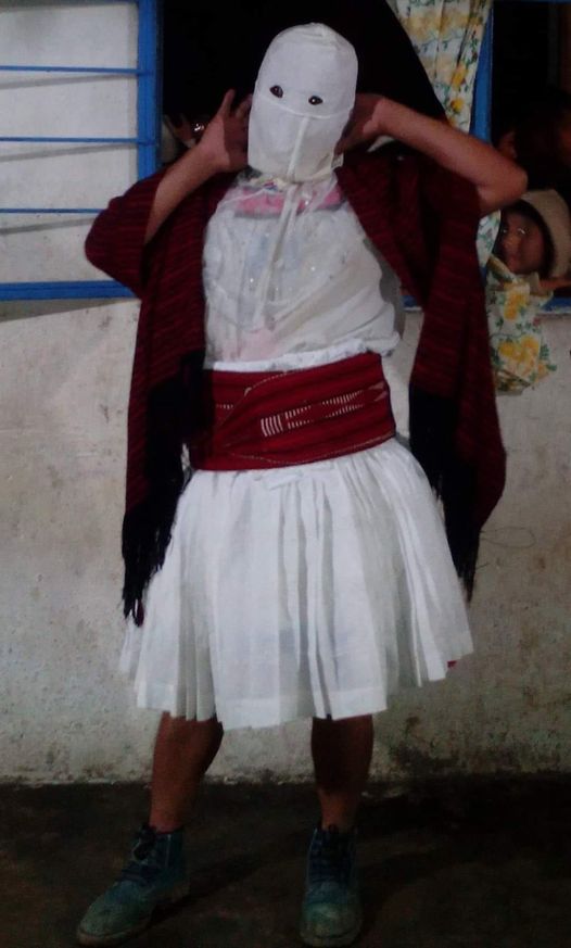 Este es uno de los personajes de los limakglakgkgolanin o los que la hacen de viejos y es una antigua tradición que se realiza en el municipio de Ixtepec, Puebla y lugares aledaños. En otros lugares les dicen lakgakgolanin o cara de viejos, aunque no en todos los municipios de la sierra la practican. Cuando empiezan las posadas de las festividades navideñas grupos de pobladores se organizan para encarnar diferentes personajes que entrada la noche bailan al ritmo de la música tradicional para este fin. Los participantes son generalmente hombres y el ritual incluye los sones llamados limasni’ o sones del podrido. Anteriormente los bailadores utilizaban máscaras de madera pero con el paso de los años ha ido sustituyéndose por máscaras de hule, aunque también hay quien se las ingenia para elaborar su propia máscara de tela, cómo el que se muestra en la imágen. Es preciso destacar que los sones para este carnaval están en serio riesgo de desaparecer por la falta de interés de los músicos actuales y el nulo apoyo de las autodidades de todos los niveles de gobierno para su preservación, aunado a la avanzada edad de los que los tocan.