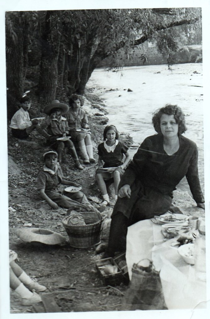 1932. María Luisa lleva a sus niños de día de campo al río. María de los Ángeles se preocupa de llevar pantalones, botas y sombrero. La tía Maícha ha preferido el vestido. El tío Teto correteará con un amigo. Van comer a la orilla del Atoyac en algún punto cercano al puente de Las Ánimas. O tal vez está próximo Agua Azul. Ha llevado la mesa y el mantel, y en la canasta los platos y las viandas. Mi abuela no teme por la salud de su familia. No tiene miedo de la fuerza de la corriente. En sus ojos la confianza en la naturaleza. Nada en el paisaje guarda podredumbre. El río que corre por las afueras de la ciudad es tan entrañablle y simple como esta escena familiar que de seguro ha retratado el abuelo Sergio.