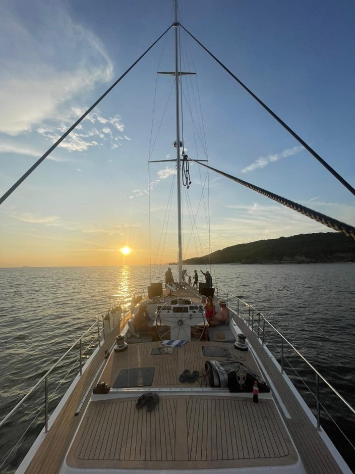 El Atenea fondeado en un extremo de la Bahía de Banderas.