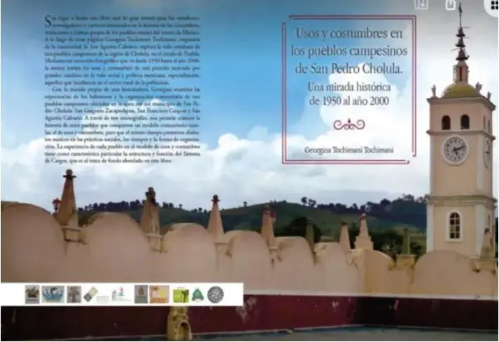 El texto de la Mtra. Tochimani no es un estudio meramente histórico; nos sumerge en una multiplicidad de saberes. Va de la historia con H mayúscula, pasando por la historia social, la sociología, la etnohistoria, la antropología, la antropología visual, el estudio de las toponimias y los mapas, la geografía, etc. En el texto encontramos la espiritualidad y la religiosidad popular de los cholultecas, entre otros saberes y conocimientos que forman parte de su acervo y patrimonio cultural material e inmaterial. Es un libro muy bien nutrido de bibliografía y entrevistas que, considero, fue una lástima que algunas de ellas no las haya insertado en el mismo.