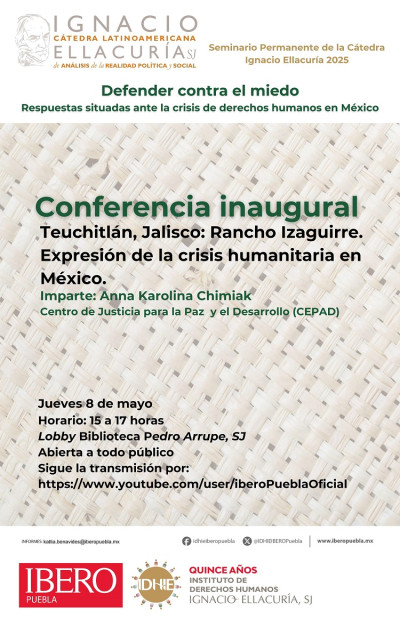 Bajo el subtítulo —que a su vez es propósito— de Defender contra el miedo: Respuestas situadas ante la crisis de derechos humanos en México, la IBERO Puebla recibió esta ponencia que llega a responder a este contexto con una afirmación contundente: se trata de una crisis humanitaria evidente, en la que el Estado y los organismos internacionales deben actuar.
