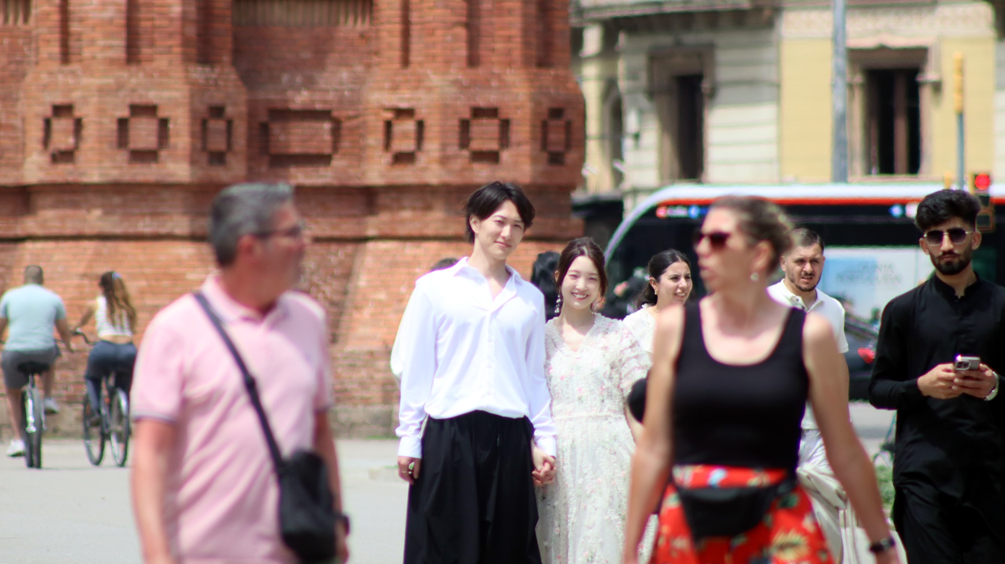 Desde un banco frente al Arco del Triunfo, la vida cotidiana de Barcelona revela su Babel contemporánea: inestable, múltiple y profundamente humana