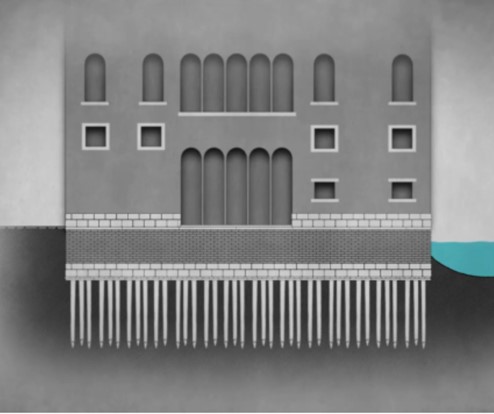Representación gráfica de cómo están construidos los edificios en Venecia.
