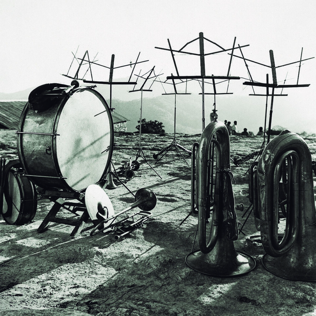 En la serie a la que me he referido, los instrumentos musicales, pero sobre todo los músicos —indígenas— son el centro de las imágenes: los atriles como garras de halcones enterrados en la tierra, las ropas blancas, los pies desnudos, los rostros angulosos de pómulos pronunciados podrían hacer pensar al espectador, que se trata de fotografías tomadas ayer o la semana pasada. No mucho ha cambiado en la zona donde fueron tomadas las fotografías, hace ya setenta años.