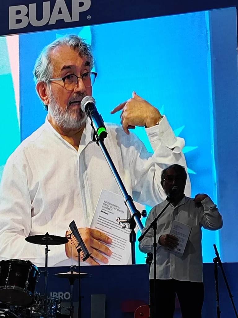Helio comenzó tocando la guitarra y cantando con el Huesca Ensamble para continuar con la presentación de su libro Influencia de la poesía de la canción en México. Orígenes y desarrollo, editado por la propia UAP.