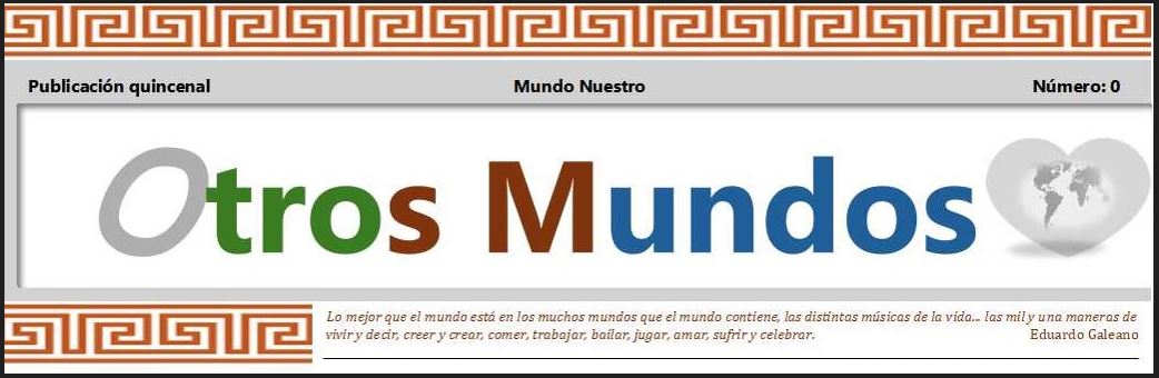 Esta nueva publicación en Mundo Nuestro pretende ser un espacio de encuentro de las expresiones literarias, artísticas y culturales de las y los creadores indigenas y urbano populares. Queremos ayudar a cubrir el gran vacío que existe actualmente en la prensa y la comunicación poblana: no hay una publicación cultural que le dé cabida a estas expresiones y que, a su vez, convoque a tener en sus páginas a creadores y creadoras de otra partes del país y de Indoamerica América. Gerardo Pérez Muñoz