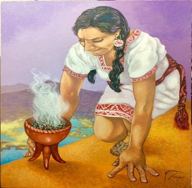 Jaime Chávez Marcos. Rä hmäte Nximhai/Ofrenda a la Tierra. Acrílico sobre tela.