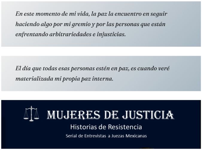 A un año del movimiento de resistencia emprendido por juzgadoras, juzgadores y trabajadores en defensa del poder judicial en México, Juana está convencida que, a pesar del arribo de una reforma, la resistencia continuará desde los frentes de una sociedad que, como ella, consideran que la justicia debe alejarse cada vez más de la política.