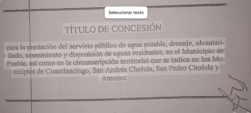 Concesión que se expedía en ese momento con el propósito de que la referida sociedad mercantil prestase el servicio público de suministro de agua potable y de alcantarillado en el municipio de Puebla en la totalidad de su superficie, así como en determinadas circunscripciones delimitadas ex profeso en el propio título en cuestión, correspondientes a los municipios de Cuautlancingo, San Andrés, Cholula, San Pedro, Cholula y Amozoc.