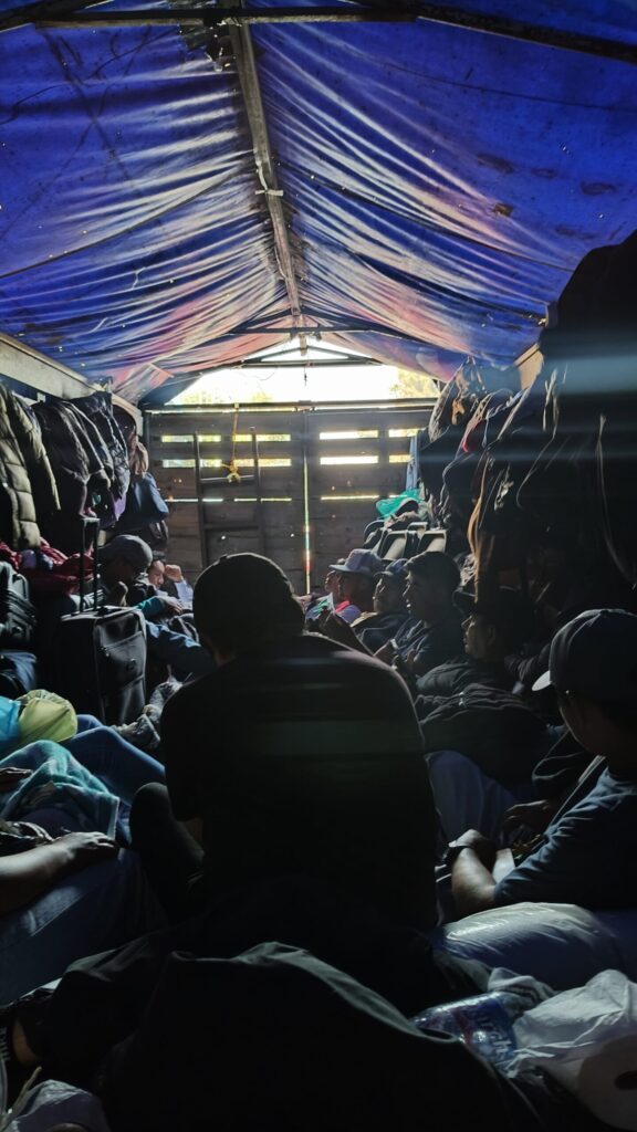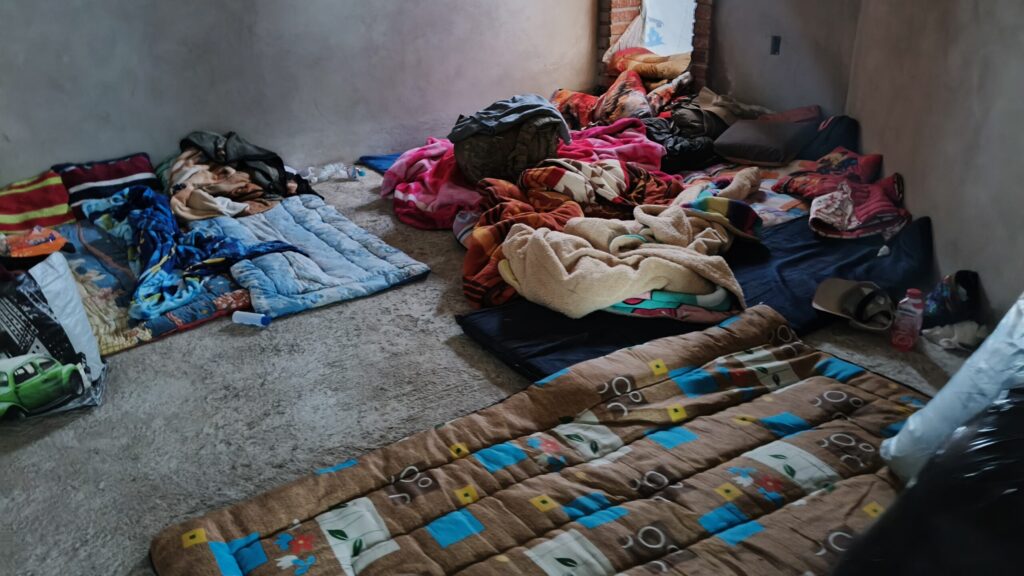 Este día fue el más complicado para mí, pues ya traía una incomodidad desde el día uno y el cansancio se estaba acumulando, mentalmente me encontraba con ánimo, recordando siempre el objetivo final, pensando en las palabras de aliento que me dió mi familia antes de partir y eso me mantenía de pie muchas veces. Cuando por fin llegué a descansar, me encuentro con que dormiría en una casa en obra negra sin ventanas ni puertas, únicamente con revoque, en la planta baja almacenaban pacas de zacate y en la planta alta se distribuían cinco en cuartos y un baño, donde nos las ingeniamos para caber la mayor cantidad de personas posibles, con costales taparon un poco las ventanas y esa noche no pasé frío.