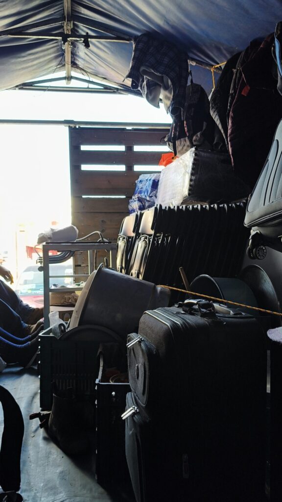 El día siguiente desperté a las 2:00 a.m, el sábado 8 de Noviembre, ya descansada y un poco recuperada del malestar en mi rodilla y cadera, caminé desde Xaltocan hasta la Colonia Adolfo López Mateos en el Municipio de Hueyotlipan, desde el centro del Municipio se formó un contingente conformado por una camioneta pick up al frente y una barrera de personas con chaleco y banderas reflejantes al costado del grupo denominados “bandereros”, en total recorrí 25 kilómetros con algunas paradas para reagruparnos e hidratarnos, pues aquí el camino fue totalmente autopista, me dió miedo en algún momento puesto que los trailers pasaban al costado de nosotros, a pesar de esto confiaba en que todos estábamos seguros de alguna manera. Al amanecer teníamos una parada específicamente para tomar café y pan, se volvió una parada importante para descansar y recargar energía en esos últimos kilómetros. Caminaba pero no veía el fin, preguntaba “¿Falta mucho?” y la respuesta siempre era “No, ya estamos cerca”, no podía dimensionar cuánto era uno o diez kilómetros en la inmensidad de la autopista, solo quería llegar a descansar y saber que me había acercado más al objetivo final ese día. Después de afrontar la pendiente más prolongada hasta el momento y sin subir al camión llegué al centro de la Colonia Adolfo López Mateos, donde una familia voluntaria nos tenía preparado un espacio en su casa, se trataba de un cuarto de 8 x 6 metros que usaban como sala y comedor pero en esta ocasión se ocupó de albergue.