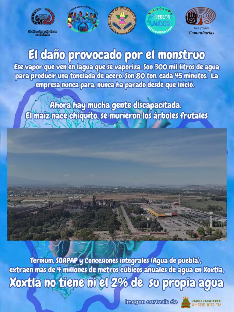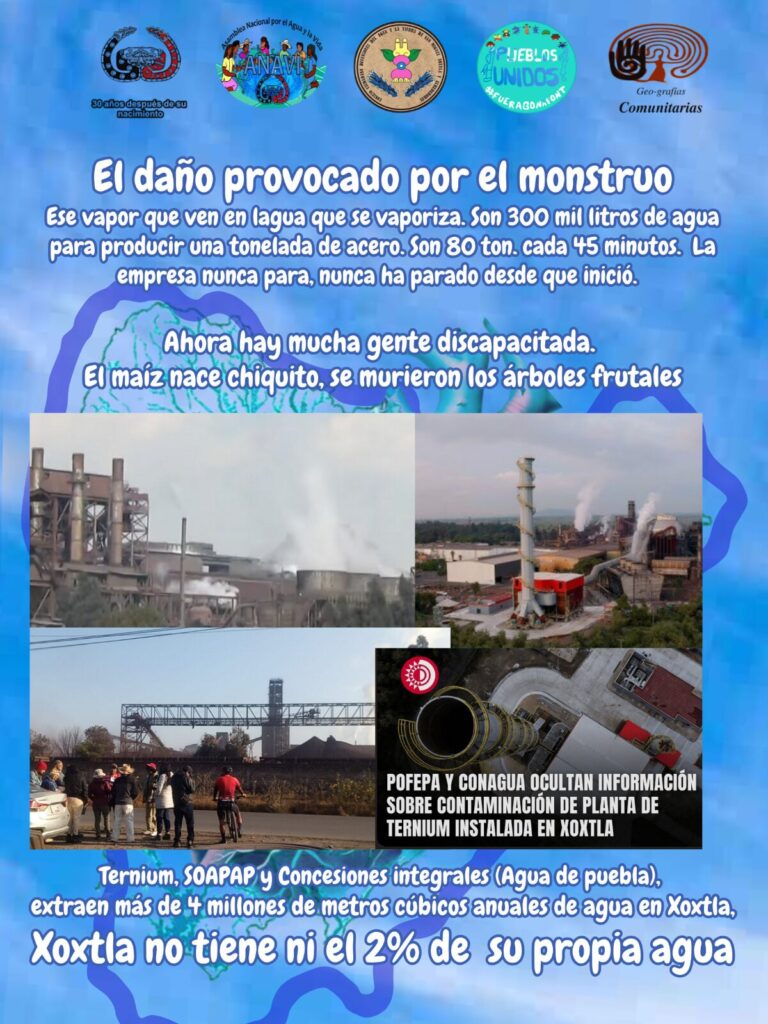 “Ternium, Soapap y Conceciones Integrales (Agua de Puebla) extran 4 millones de metros cúbicos al año. Xoxtla no tiene ni el 2 por ciento de su propia agua.”