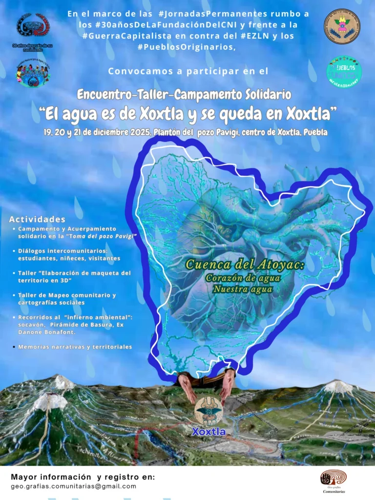 “Todos vivimos en estas montañas, el agua está debajo”. Con esa idea participaron pobladores de una decena de comunidades de Puebla, Ciudad de México, Atlixco y Sierra Norte en el taller en defensa del agua y el territorio en la tercera semana de diciembre del año que termina.