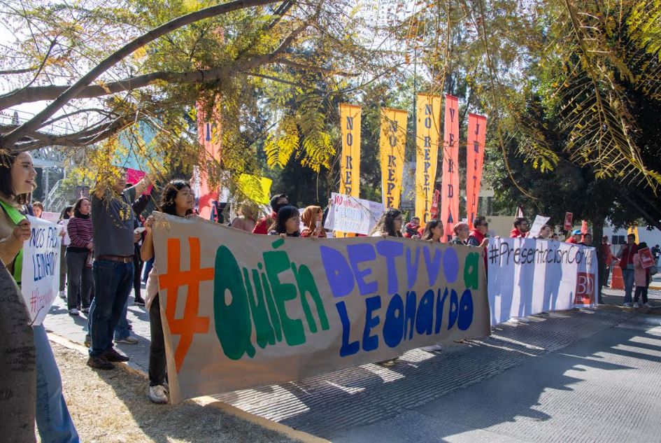 La movilización inició en punto de las 9:30 horas en el Ágora del campus, donde personal de todas las áreas universitarias, estudiantado y sociedad civil se dieron cita para la organización y conformación de un contingente solidario que salió a las calles para exigir justica. Las demandas eran claras: hacer valer el derecho humano de Leonardo y de todas las personas a ser buscadas, y que las autoridades redoblen esfuerzos y den respuestas certeras para saber dónde está el académico.