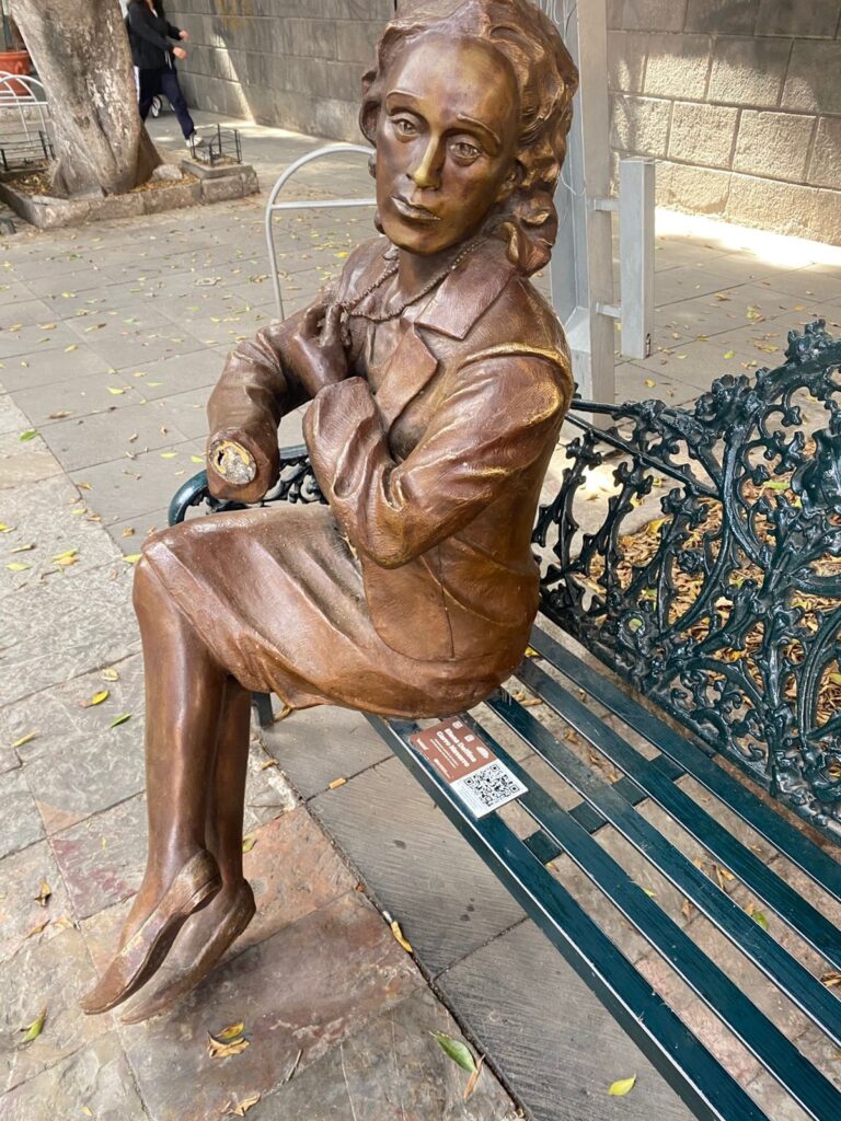 La imagen de la autora de La semana de colores, fue colocada en la Plaza de la Democracia de la Calle 4 Sur, entre las avenidas Juan de Palafox y 3 Oriente el pasado 29 de septiembre del 2025 por parte de la Gerencia del Centro Histórico del Ayuntamiento poblano, precisamente para evitar el deterioro que había sufrido en el sitio original donde fue instalada, el antiguo Parque de San Luis.