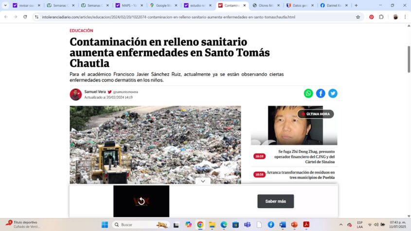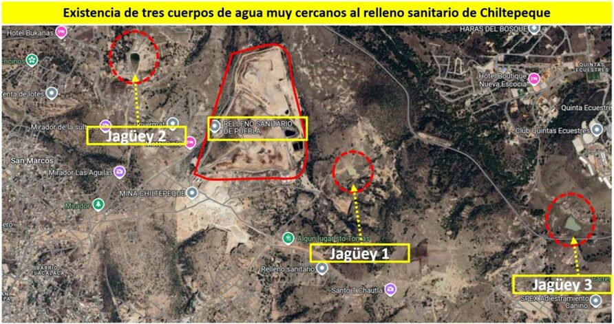 Jagüeyes contaminados por el relleno sanitario de Chiltepeque, Puebla