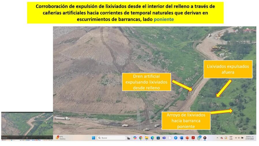 41.- Como hemos expuesto en video, se cuenta con una basta evidencia que demuestra que los excesos en la capacidad del relleno han vuelto incontrolable la gestión de lixiviados afectando por ende suelo, flora, fauna, salud humana, agua superficial y subterránea, cuerpos de agua cercanos, el arroyo sin nombre de la manifestación ambiental, cuencas hidrológicas y el cuerpo de agua más importante del estado de Puebla y la región: el Lago de Valsequillo. Hemos documentado y demostramos los siguientes hechos:
