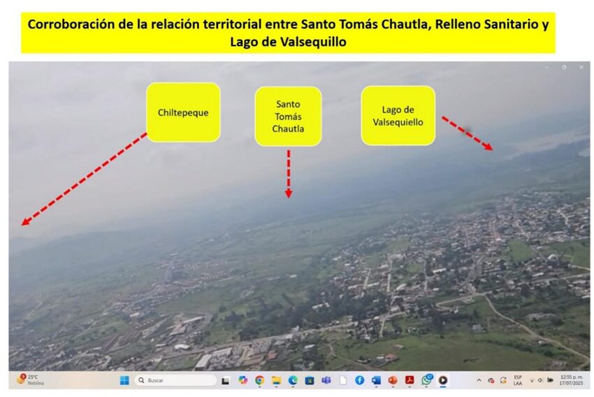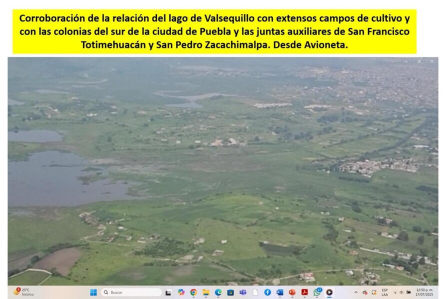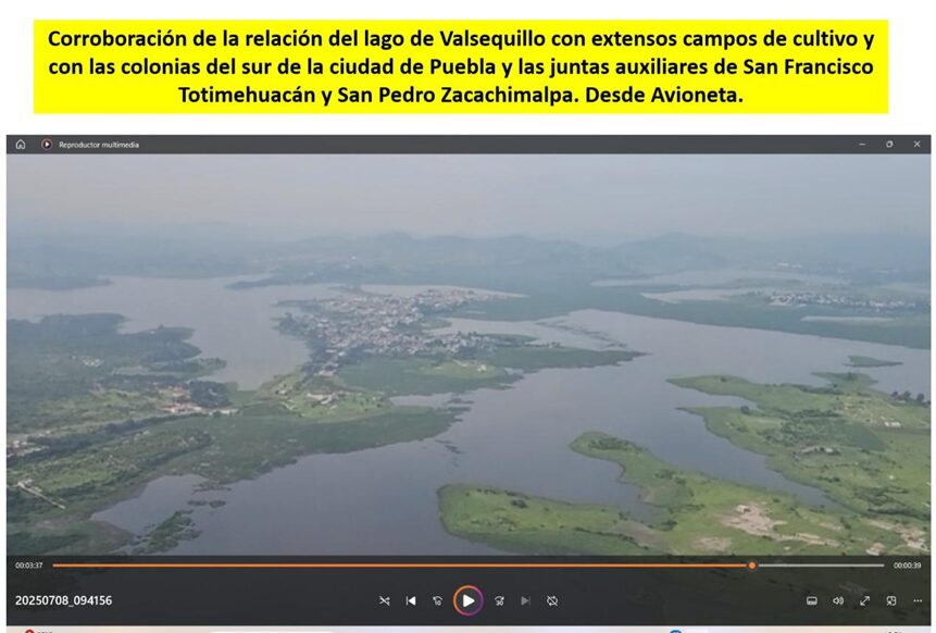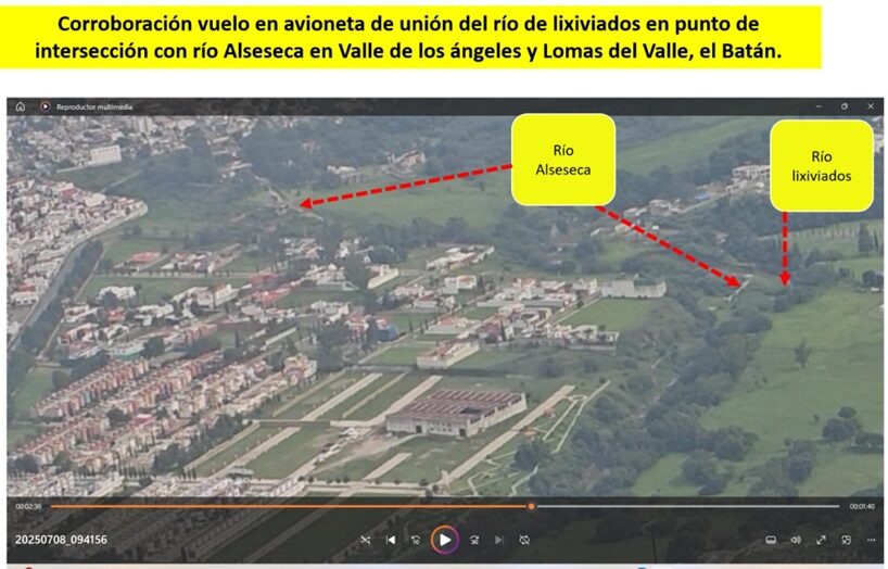 43.- A lo largo de 2025 hemos documentado videos tomados a raz de suelo, con drone y volamos en avioneta para corroborar todos los datos que hemos recabado, comprobando que los lixiviados contaminan sin lugar a dudas suelos, ríos e impactan negativamente cuencas hidrológicas y cuerpos de agua tan cercanos como el jagüey 1 y hasta el cuerpo de agua más importante de la región, el lago de Valsequillo, reconocido como humedal de importancia internacional reconocido por la ONU.