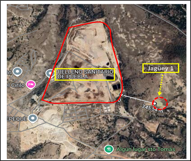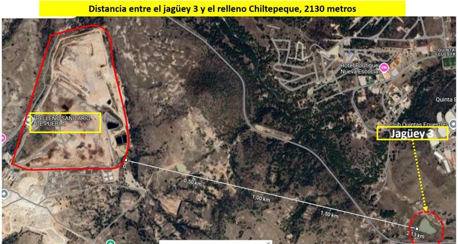 Siendo la distancia del relleno sanitario de Chiltepeque al Jagüey # 1, de solo 345 metros.