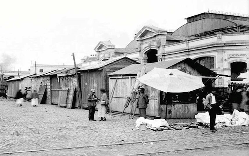 Fotografía del mercado Martínez de la Torre en 1930 (esquina de Mosqueta y Zarco). Inaugurado el 1 de junio de 1901, construido donde estuviera la Plaza Martínez de la Torre, entre las calles de Mosqueta, Zarco, Degollado y Héroes, en la Col. Guerrero. El nombre corresponde al que fuera el propietario de los terrenos donde se asentó la Col. Guerrero en 1874.