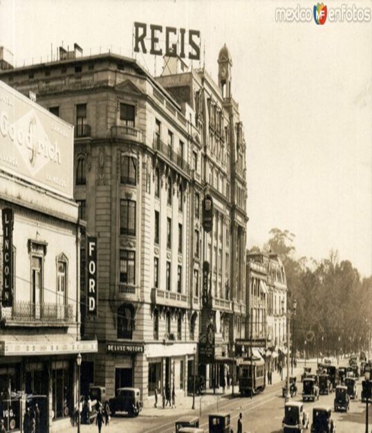 Hotel Regis. Ubicado en la calle de Azueta y Juárez en el centro histórico de la ciudad de México. Inaugurado en 1910. Fue uno de los más lujosos de la época, contaba con cine, salón de recepciones, y con el famoso cabaret Capri. El edificio se desplomó durante el terremoto del 19 de septiembre de 1985.
