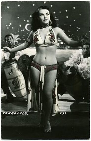 Yolanda Yvonne Montes Farrington, “Tongolele”, nació en Estados Unidos en 1932. Su particular forma de bailar y belleza la convirtieron en la bailarina estrella de México en los años cuarenta y cincuenta. Tuvo un gran éxito teatral en los principales salones de baile y cabarets de la ciudad de México y participó en una diversidad de películas en la época de oro del cine mexicano, con figuras como Germán Valdés, “Tin-Tan” y Pedro Infante.