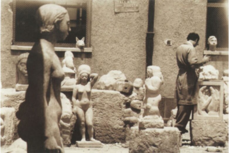 Taller de talla en piedra La Esmeralda, 1958. Foto: Memoria de labores, 1954-58. México, INBA, 1958.