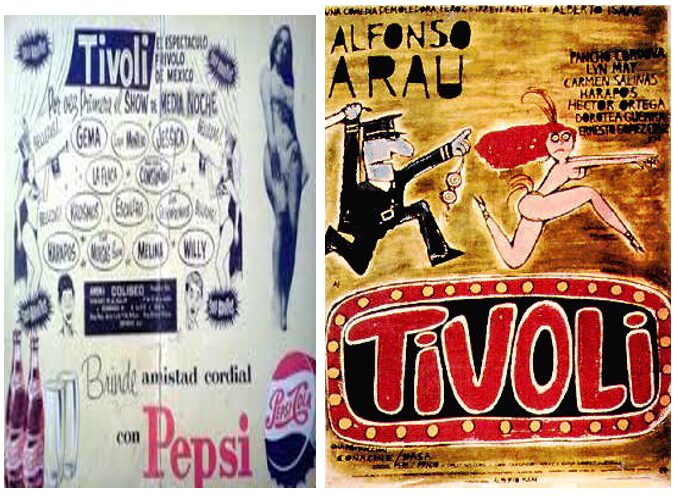 El teatro Tívoli, ubicado en el centro de la ciudad de México, en la calle Libertad número 9, fue inaugurado el 12 de septiembre de 1946 y cerrado el 10 de noviembre de 1963, debido a la ampliación del Paseo de la Reforma. Originalmente los empresarios Américo Mancini y Paco Iracheta transformaron una pequeña arena de box y lucha libre llamada La Libertad, en el referido teatro. Lo inauguración la vedette Rosita Fornés y el actor cómico Manuel Mendel. Pasó también por ahí Libertad Lamarque y en 1947 debutó Yolanda Montez, “Tongolele”. A la izquierda cartel de 1950, a la derecha cartel de la película de 1974, dirigida por Alberto Issac.