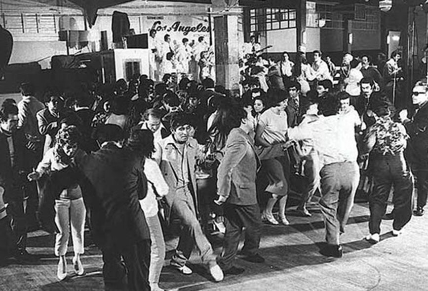 Luego estaba el Salón los Ángeles, hacían una fiesta que era el 2 de Agosto, había feria en todo el jardín, era muy famosa. El salón sólo habría los miércoles y era para puro bailar, tenías que llevar tu pareja o te conseguías a alguien adentro. Era clásico ir con zapatos de bigotera, los de doble tono. El Salón los Ángeles era para mí más tranquilo y decente, al igual que el California que estaba en la colonia Portales.