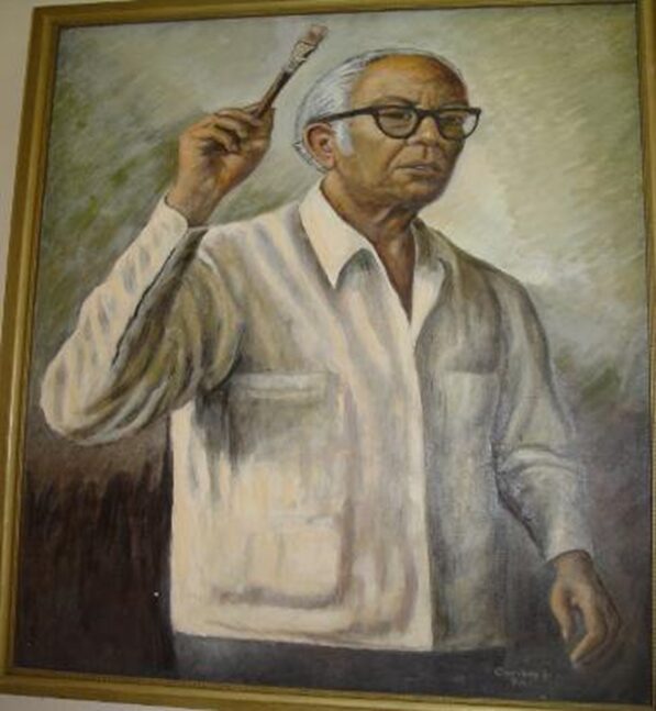 Roberto Garibay, Maestro de Artes Plásticas de la UNAM y profesor de dibujo y pintura por el INBA, la Escuela Nacional Preparatoria y Escuela Nacional de Artes Plásticas; dirigió el Museo del Palacio de Bellas Artes de 1974 a 1979, y fue Presidente de la Comisión Dictaminadora de la Carrera de Artes Visuales, durante 9 años. Autorretrato. Foto: Sonia Guerrero.