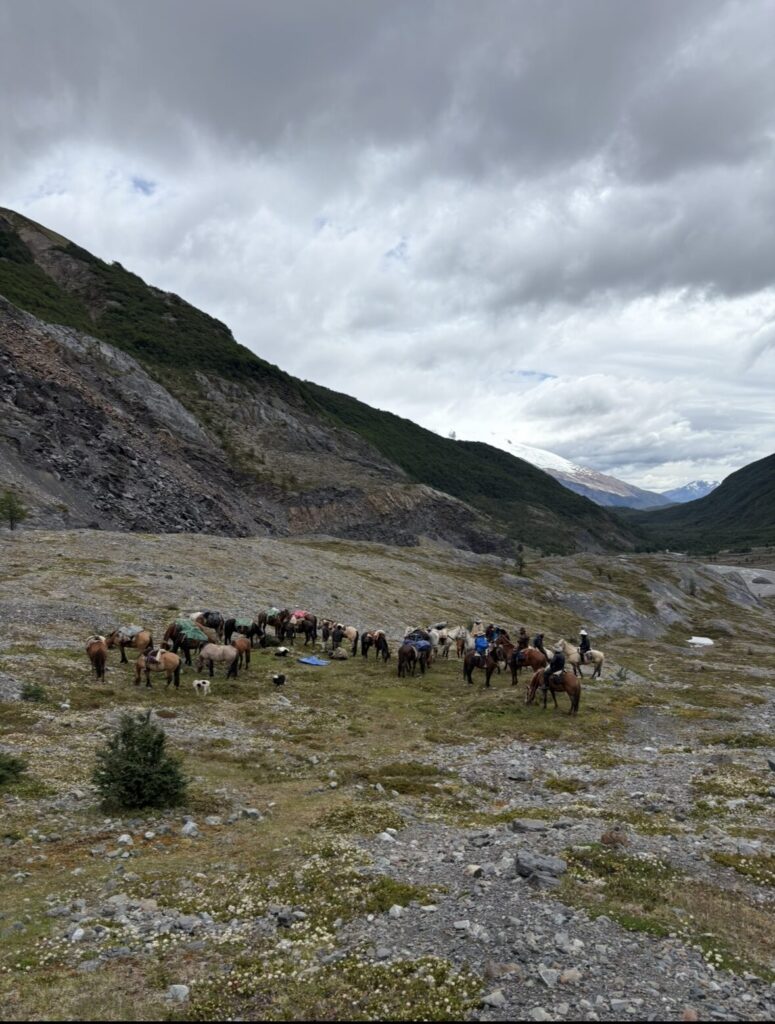 Al final de la carretera nos reunimos con los guías, los baqueanos y David, el chef de ruta. Cristian asignó los caballos. Nadie eligió: todos aceptamos. Para la expedición se movilizaron treinta caballos: montas, pilcheros y animales de reserva. El número hablaba por sí solo de la seriedad de la travesía.