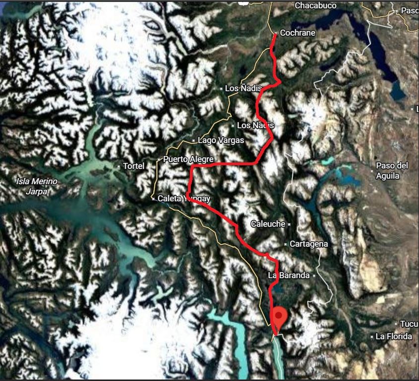 Después de dos horas de vuelo desde Santiago, aterrizamos en Balmaceda, en una inmensa planicie donde el viento parecía ser el único habitante. De ahí el grupo se trasladó en vehículo hacia el sur, por la Carretera Austral, sobre tierra y piedra levantando polvo. Avanzábamos por una franja trazada a fuerza de esfuerzo humano sobre un territorio que durante siglos solo conoció huellas de arrieros y pasos de colonos; de ahí el nombre de un paraje: Paso Las Mulas.