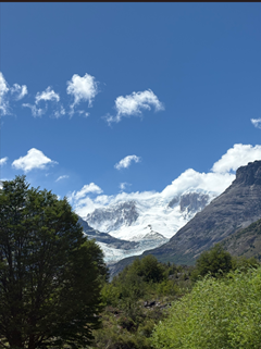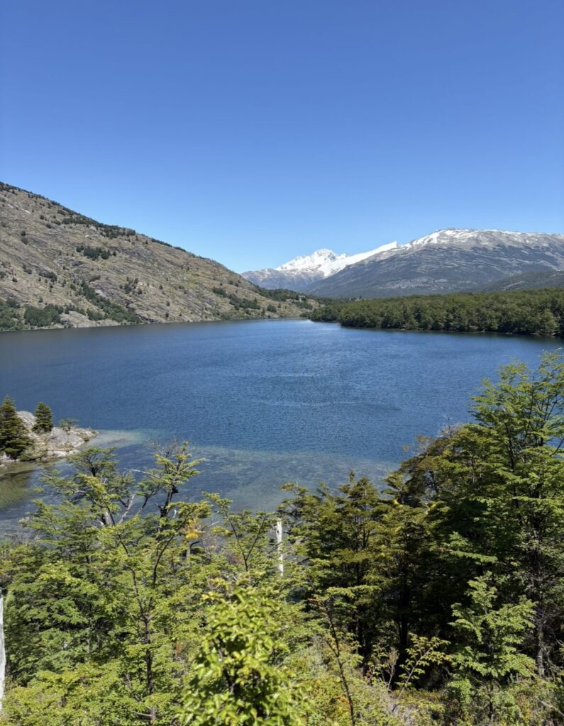 Nos detuvimos a almorzar en Puerto Río Tranquilo. A lo lejos asomaban glaciares colgantes y cumbres blancas que parecían vigilar el paso, en montañas antiguas marcadas por el hielo.