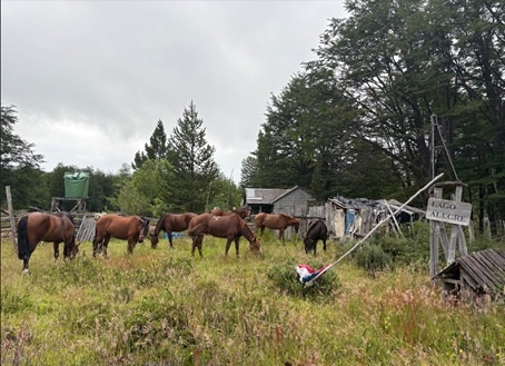 Llegamos finalmente a Villa Cerro Castillo, territorio de Cristian y Mary, organizadores de la expedición. Allí supimos que los caballos ya eran trasladados al punto de partida. La noche fue de convivencia: guitarra, cena, dominó, vino, tequila y whisky. Entre risas y conversación comenzó a consolidarse el grupo que días después compartiría cansancio, lluvia y silencio.