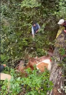Con paciencia y firmeza, los guías le ataron lazos y comenzaron a animarlo. Poco a poco, el animal logró incorporarse. Se detuvo un instante, respiró hondo, y entonces, jalado con fuerza y decisión, comenzó a escalar la empinada ladera. Metro a metro, entre la maleza, resbalando, afirmándose, volvió a ganar altura hasta alcanzar de nuevo la huella.